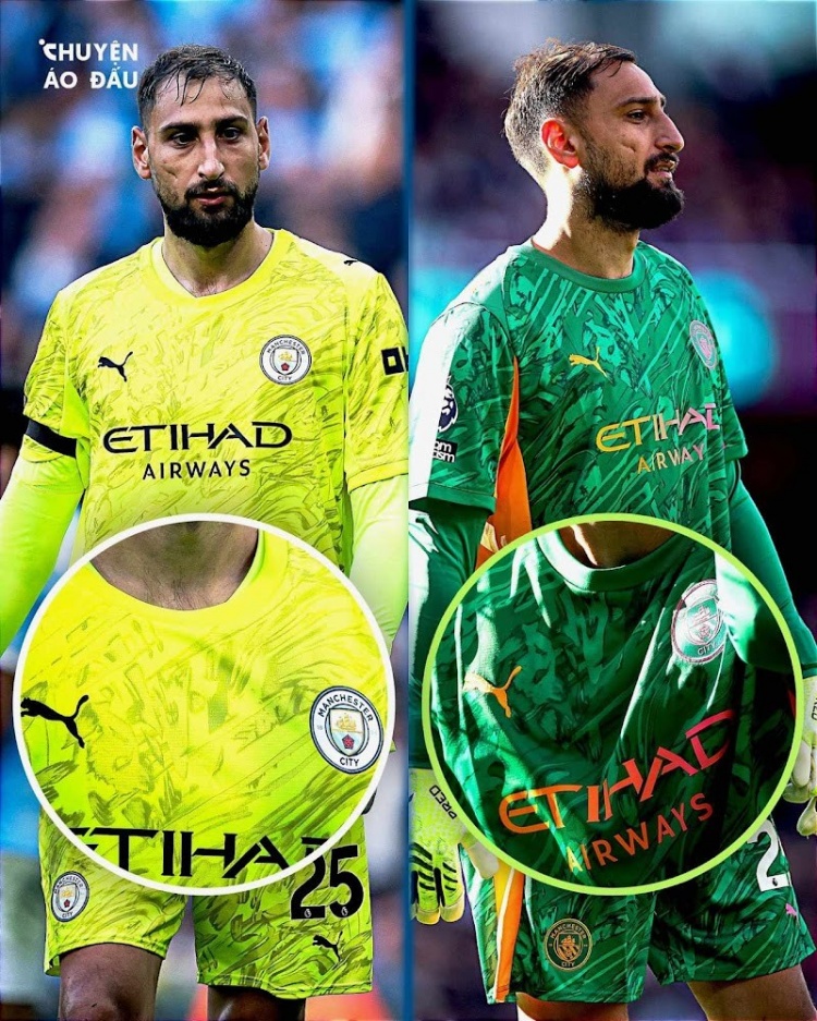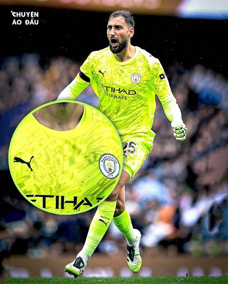 在上周末曼城客场应战 对阵阿森纳的赛事 中,多纳鲁马继续身穿球迷版守门员运动活动 服 。